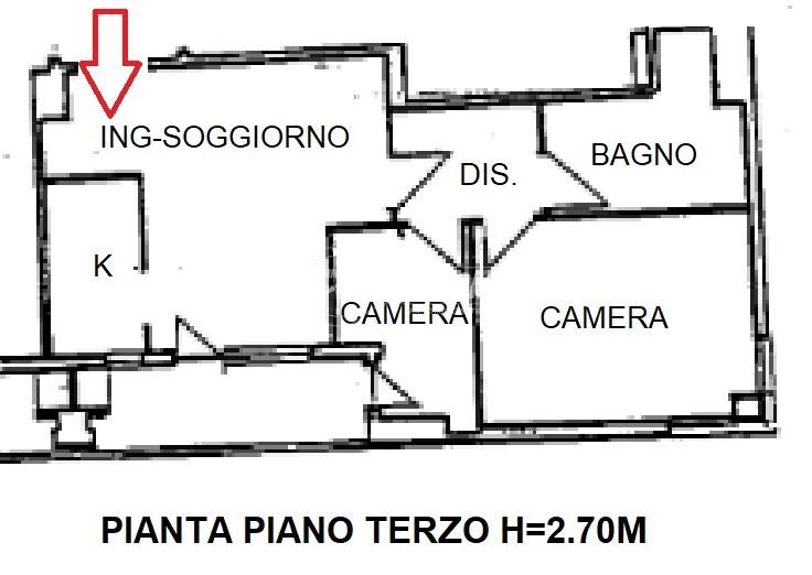 L’immobile è composto da ingresso, soggiorno di 15,93 mq con accesso al terrazzo abitabile, cucina di 8,23 mq, disimpegno notte dal quale si accede alla camera matrimoniale di 20,12 mq e alla cameretta di 10 mq, bagno di 10,12 mq con vasca. Completa la soluzione un garage.