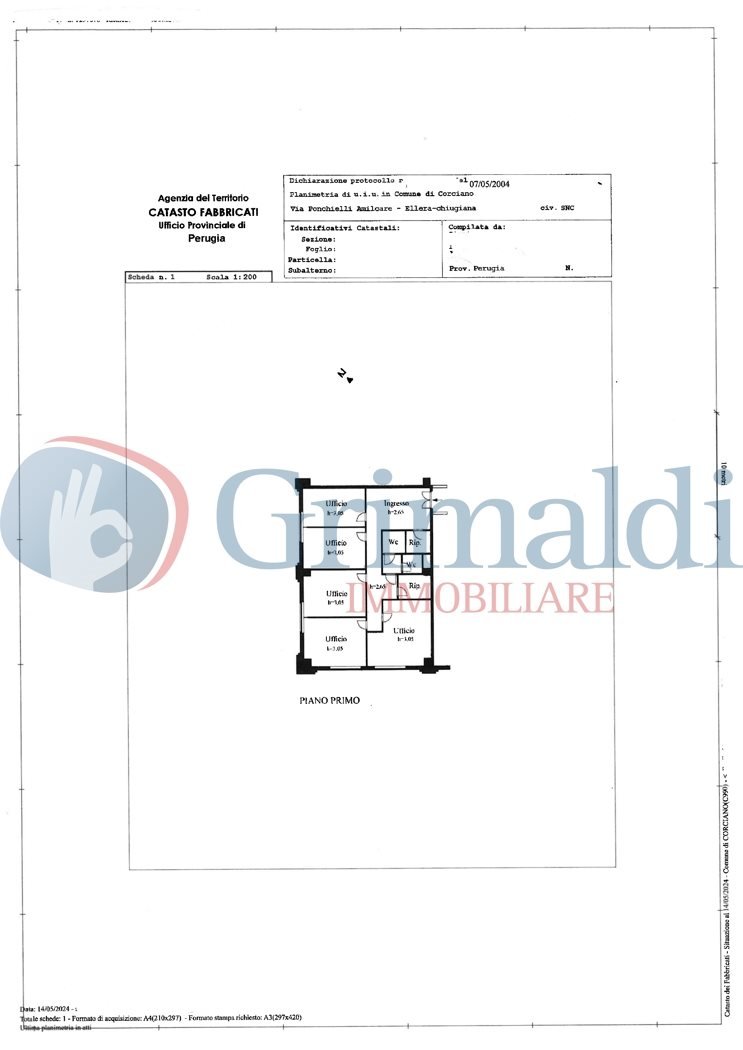 Ufficio al 1° Piano nel centro direzionale – commerciale “Gli Archi” suddiviso in ingresso-sala d’attesa, 5 stanze ufficio, due ripostigli, due bagni con antibagno.